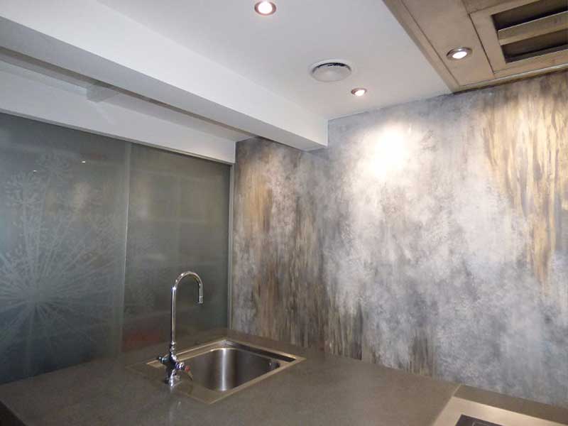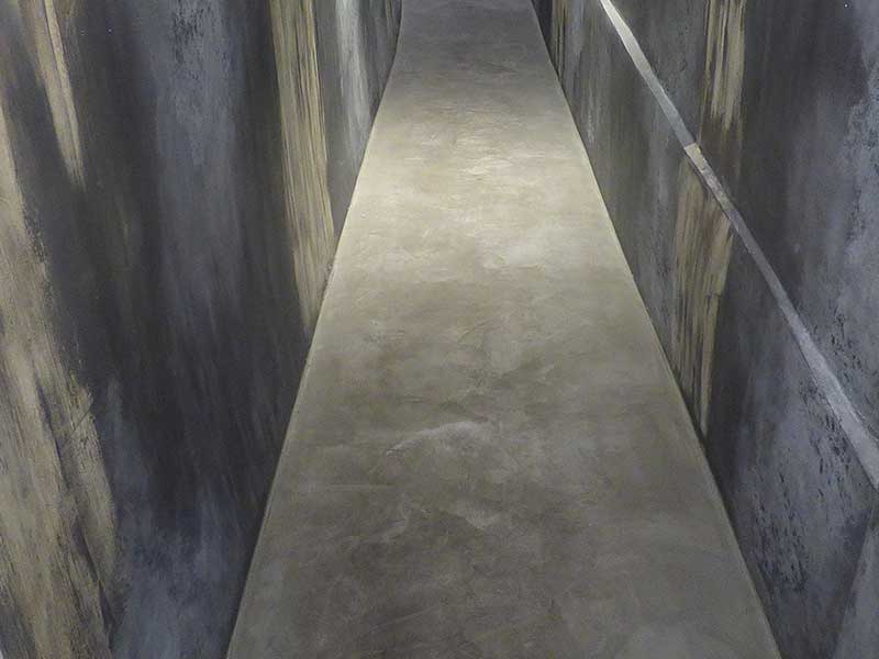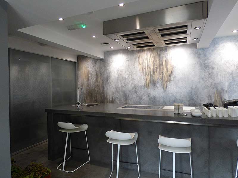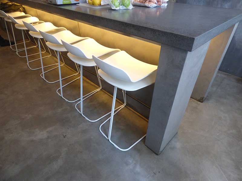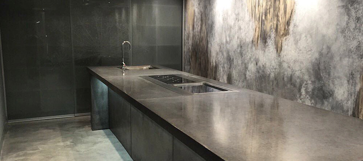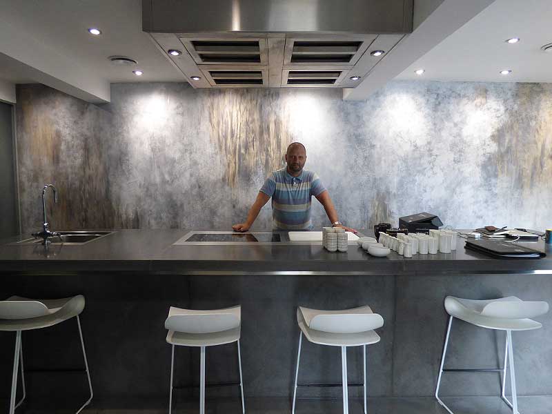 A mix of various materials and colours were used to create this unique and bespoke finish. For the floor area we applied micro cement, all areas were sealed with anti-stain protection.