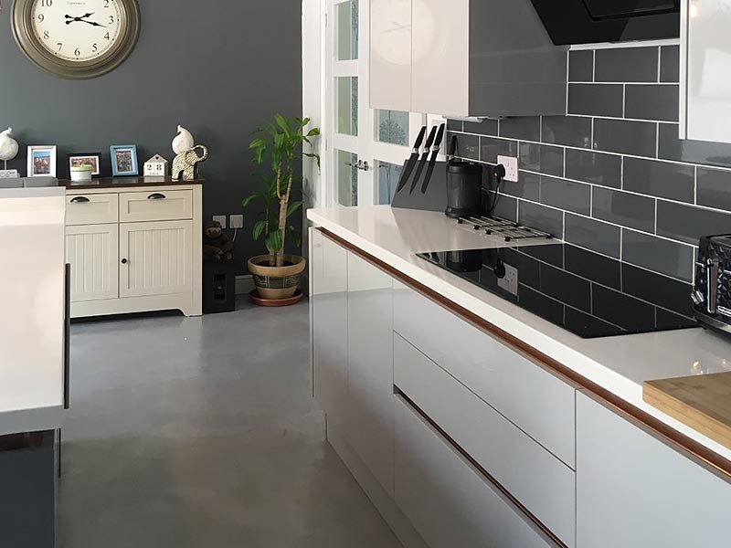 Micro Cement is a highly durable coating, available in almost every colour imaginable, and can be coated in a high gloss, matt or sating sealer. This water resistant product is hand applied using specialist trowels which create unique visual effects and textures. This product is suitable for areas of high traffic, which makes it the perfect product for a kitchen floor!